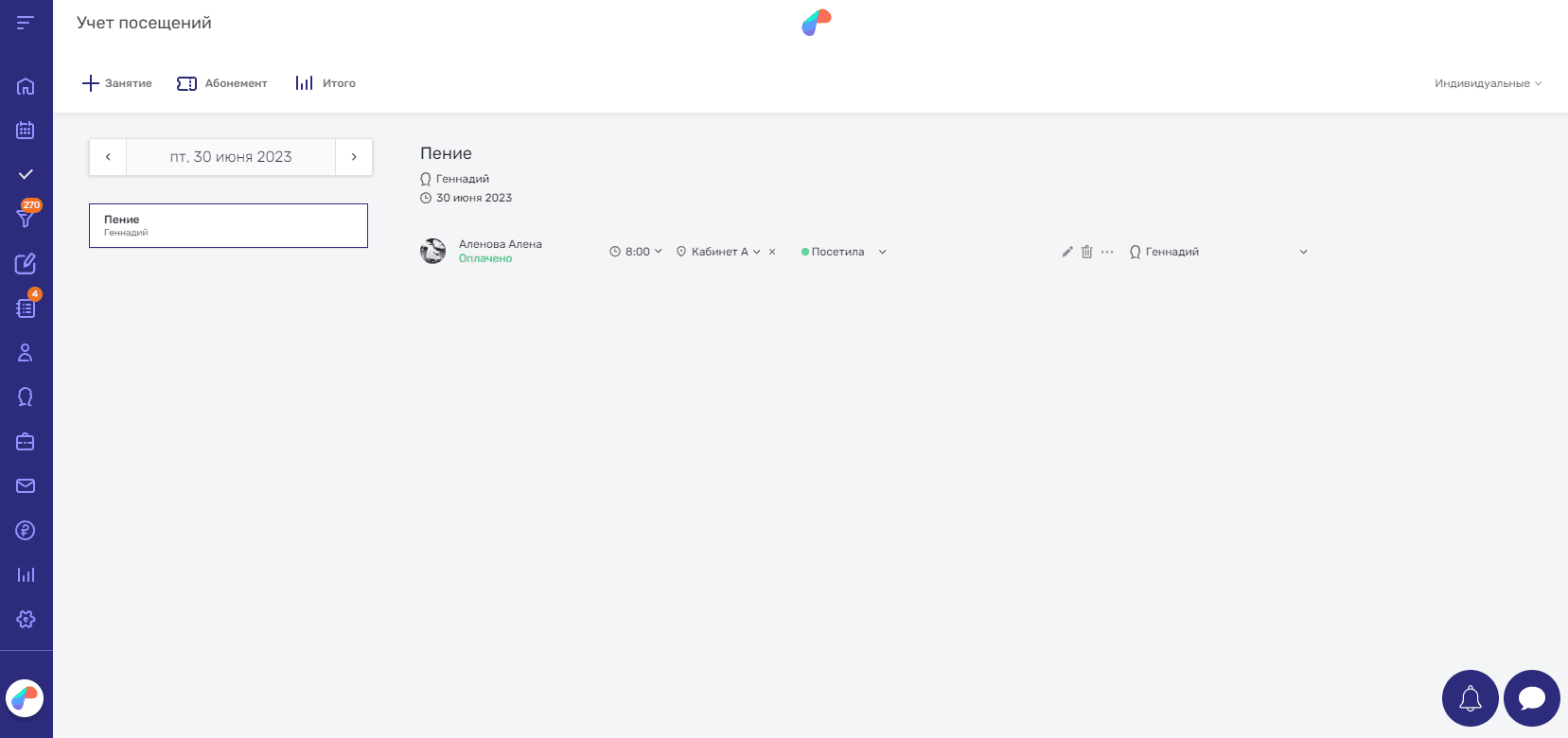 Индивидуальные занятия в разделе “Посещения” в Параплан CRM