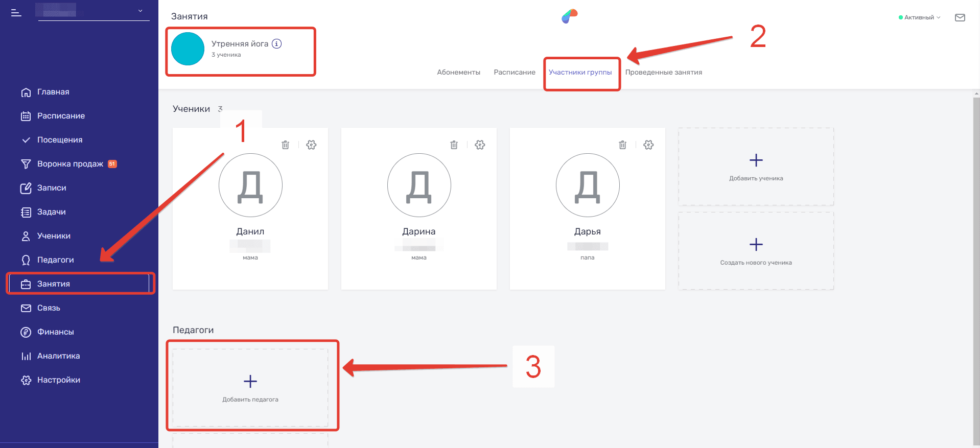 - Ниже в блоке Педагоги кликните на Добавить педагога