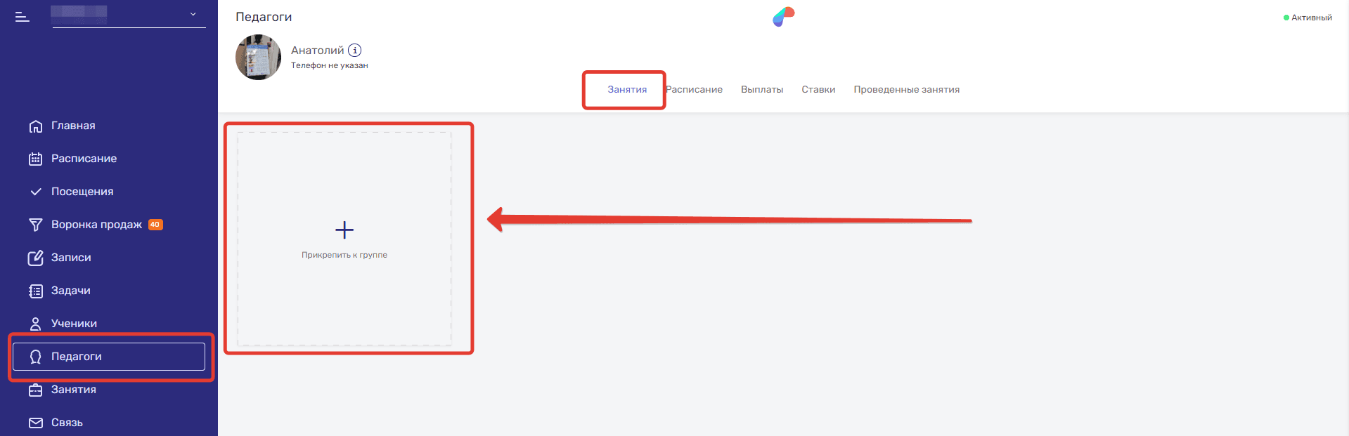 - Кликните на занятие, к которому хотите прикрепить педагога