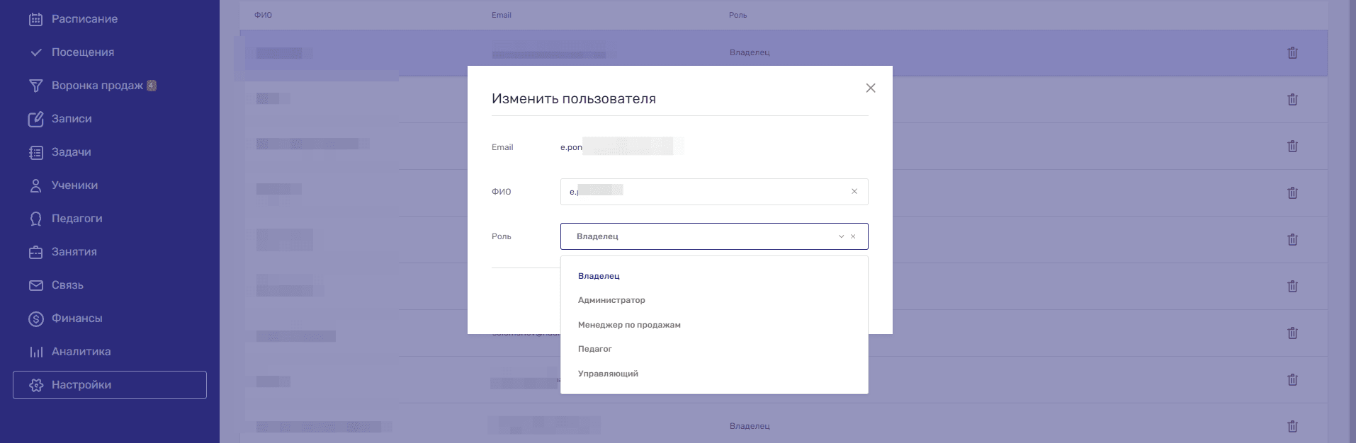 По желанию вы можете изменить роль уже добавленному пользователю. Для этого вам нужно: