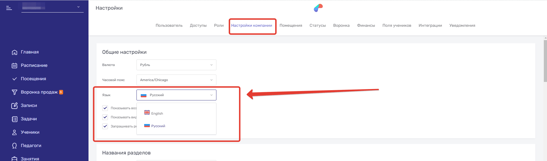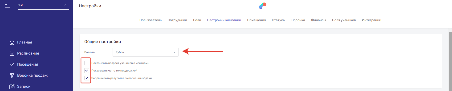 Здесь же можно настроить отображение возраста учеников, чата с поддержкой и иконки уведомлений в нижнем правом углу экрана.