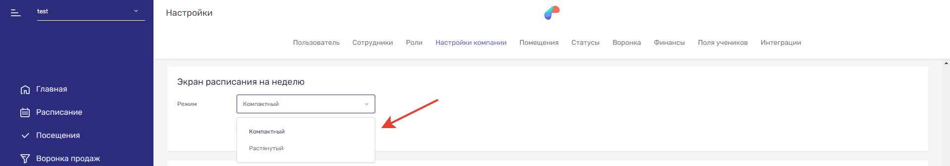 - В подразделе Экран расписания на неделю в выпадающем списке выбрать нужный вид