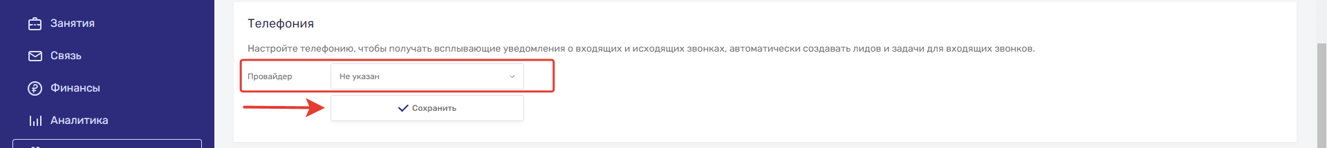 Телефония в системе входит в стоимость тарифов Макси и Франшизы. Дополнительно оплачивается сервис провайдера. В системе есть возможность настроить интеграцию с провайдерами Мегафон, Novofon и Mango Office.