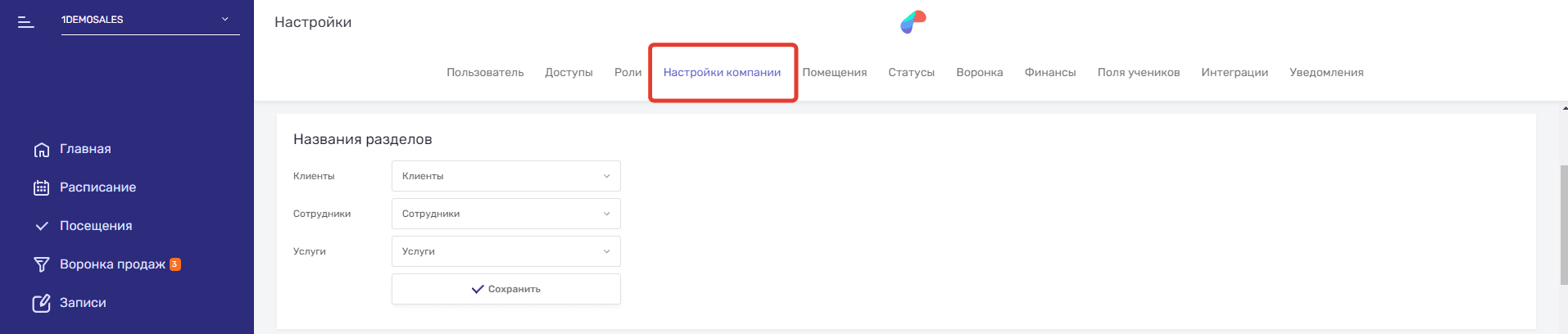 Вы можете изменить названия 3-х разделов для комфортной работы в системе: