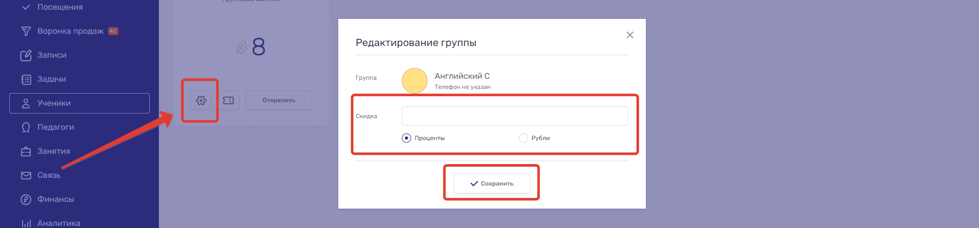В случае, если вы хотите предоставить индивидуальную скидку выбранному ученику на конкретное занятие, то вам следует: