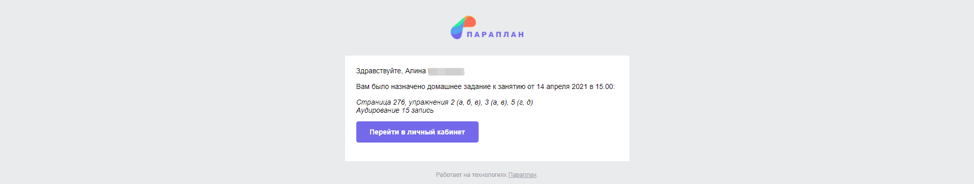 Ученик может получить уведомление о назначенном домашнем задании двумя путями: