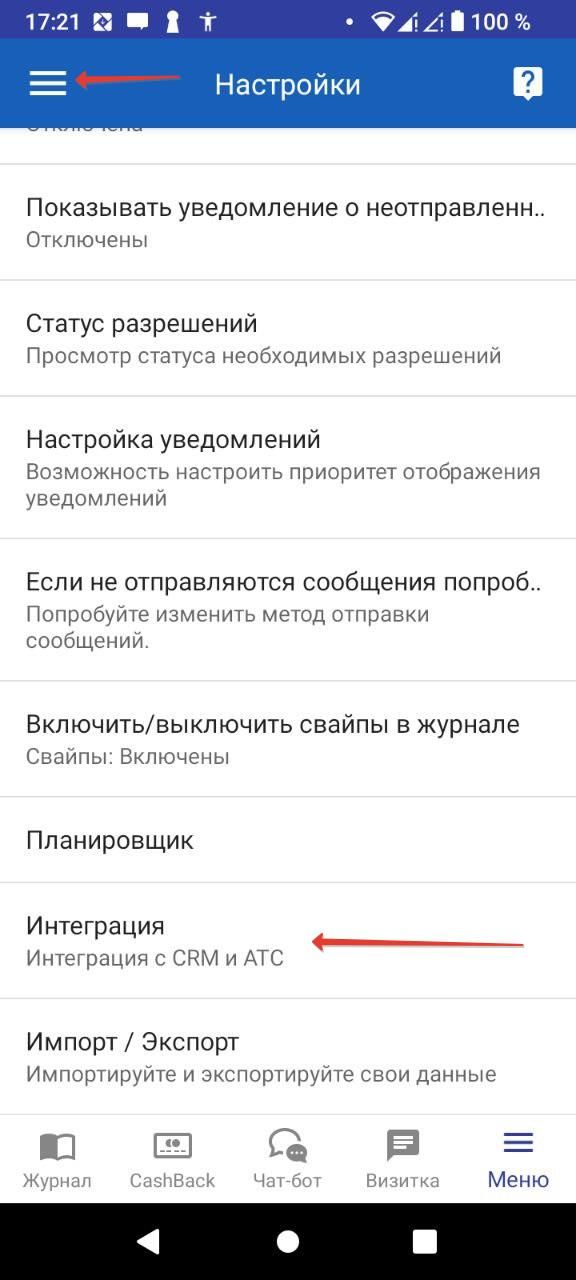 Для работы интеграции между Параплан CRM и СМС-Визитка вам необходимо: