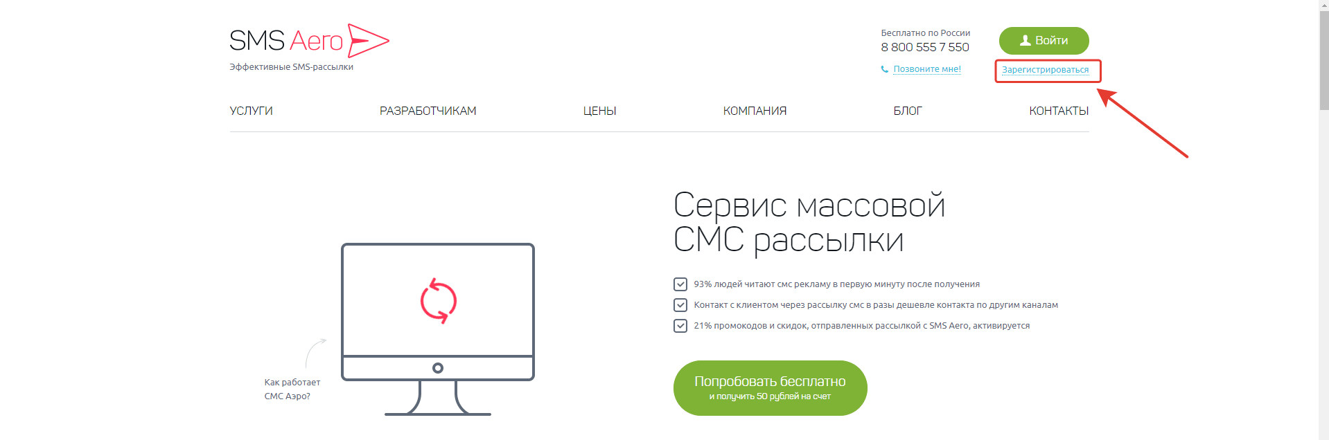 Для включения в системе SMS-рассылок нужно зарегистрироваться и заключить договор с сервисом https://smsaero.ru/