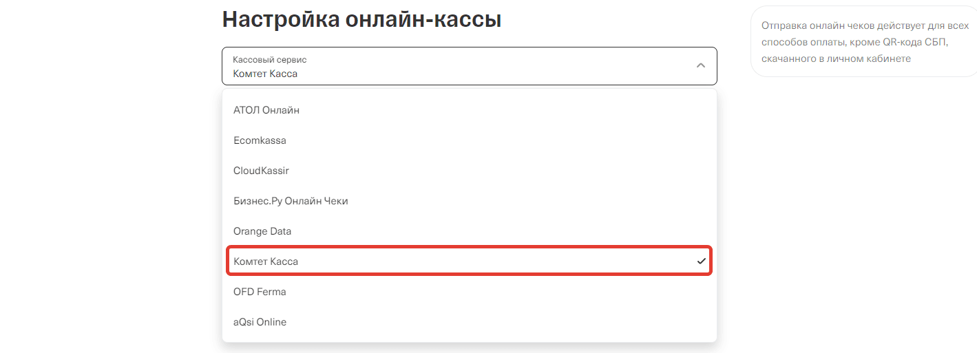 У каждого представленного провайдера есть интеграция с КОМТЕТ Кассой.