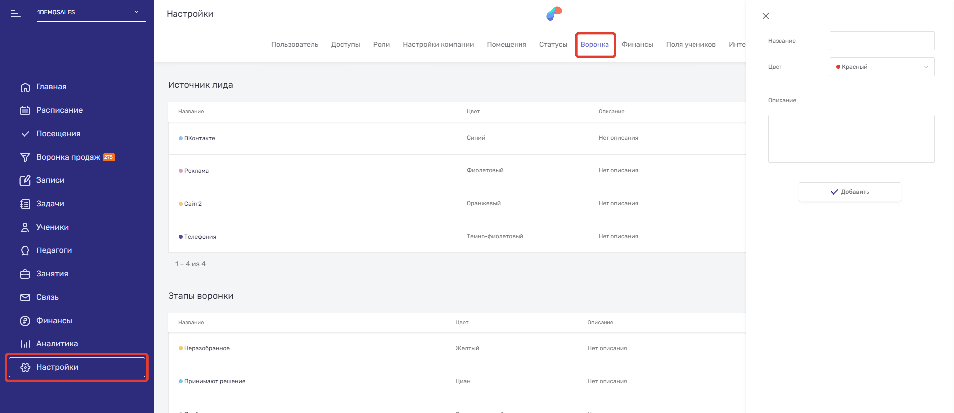 Источники лидов — это все каналы, по которым вам поступают потенциальные клиенты (лиды). Например, социальные сети, таргетированная реклама, листовки итд. Лиды, которые попали в систему с виджетов, Телефонии, WhatsApp, автоматически получают назначенный в настройках источник. Остальным лидам, созданным вручную, вы можете присвоить один, из созданных вами, источник.