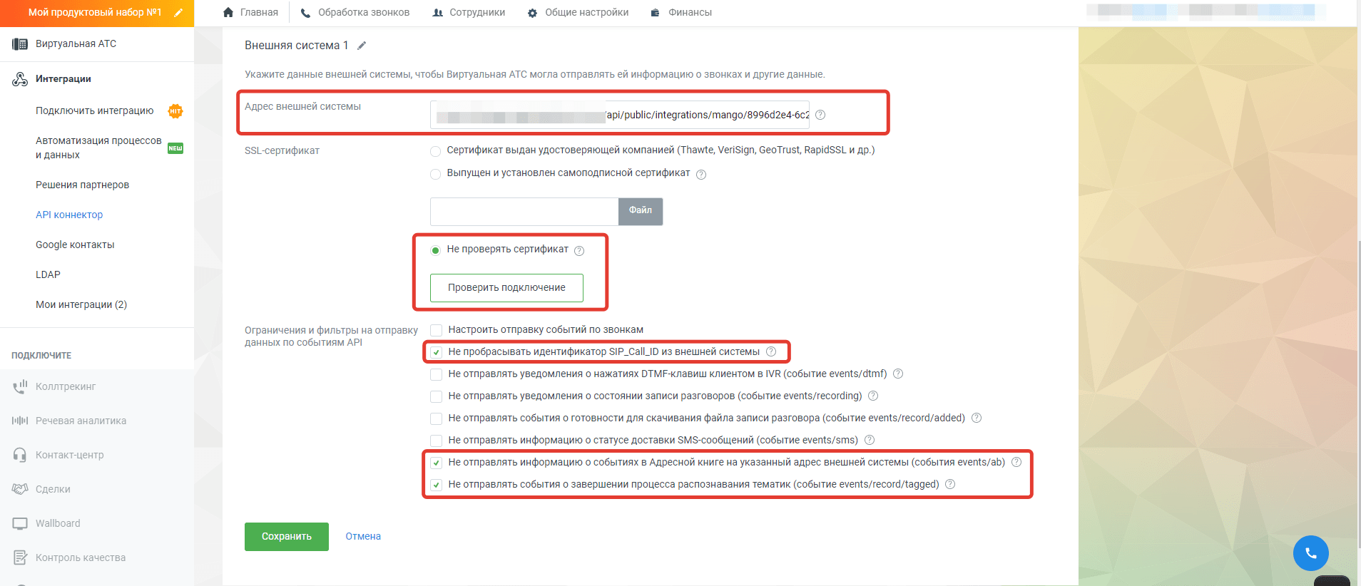 - Сверьте настройки в кабинете с настройками на скриншотах