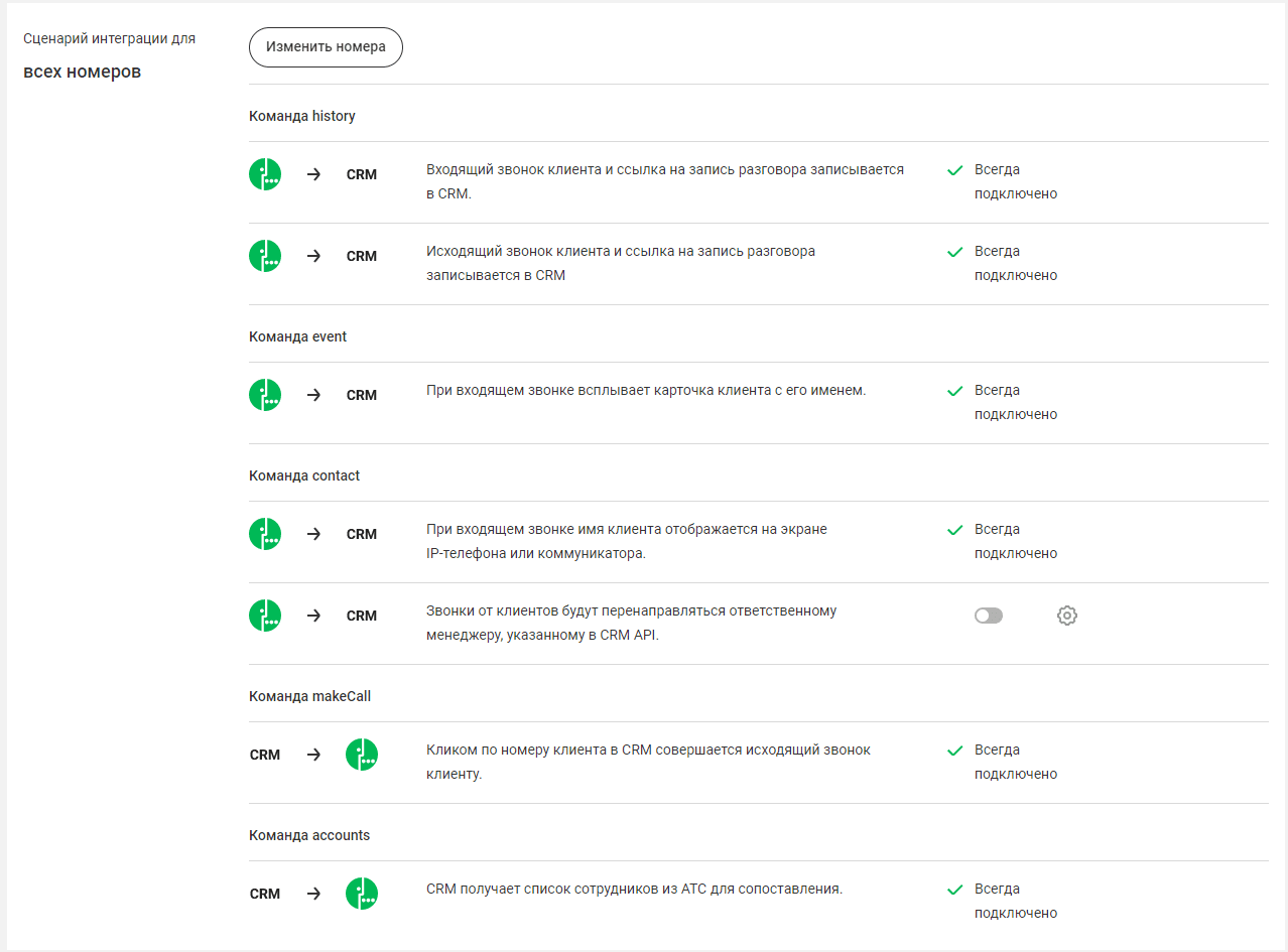 Важно знать: для корректной интеграции с телефонией необходимо, чтобы все номера клиентов в Параплане начинались с кода страны (для РФ: +7 или 7).