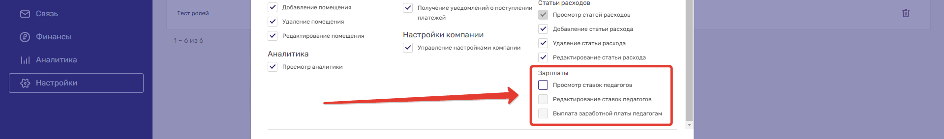 - Уберите галочку у пункта Просмотр ставок педагогов (2 оставшиеся отметки автоматически снимутся)
